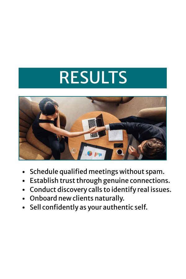 We teach you proven, human-first strategies to become a master at booking qualified meetings, building trust, closing deals and building lasting client relationships.